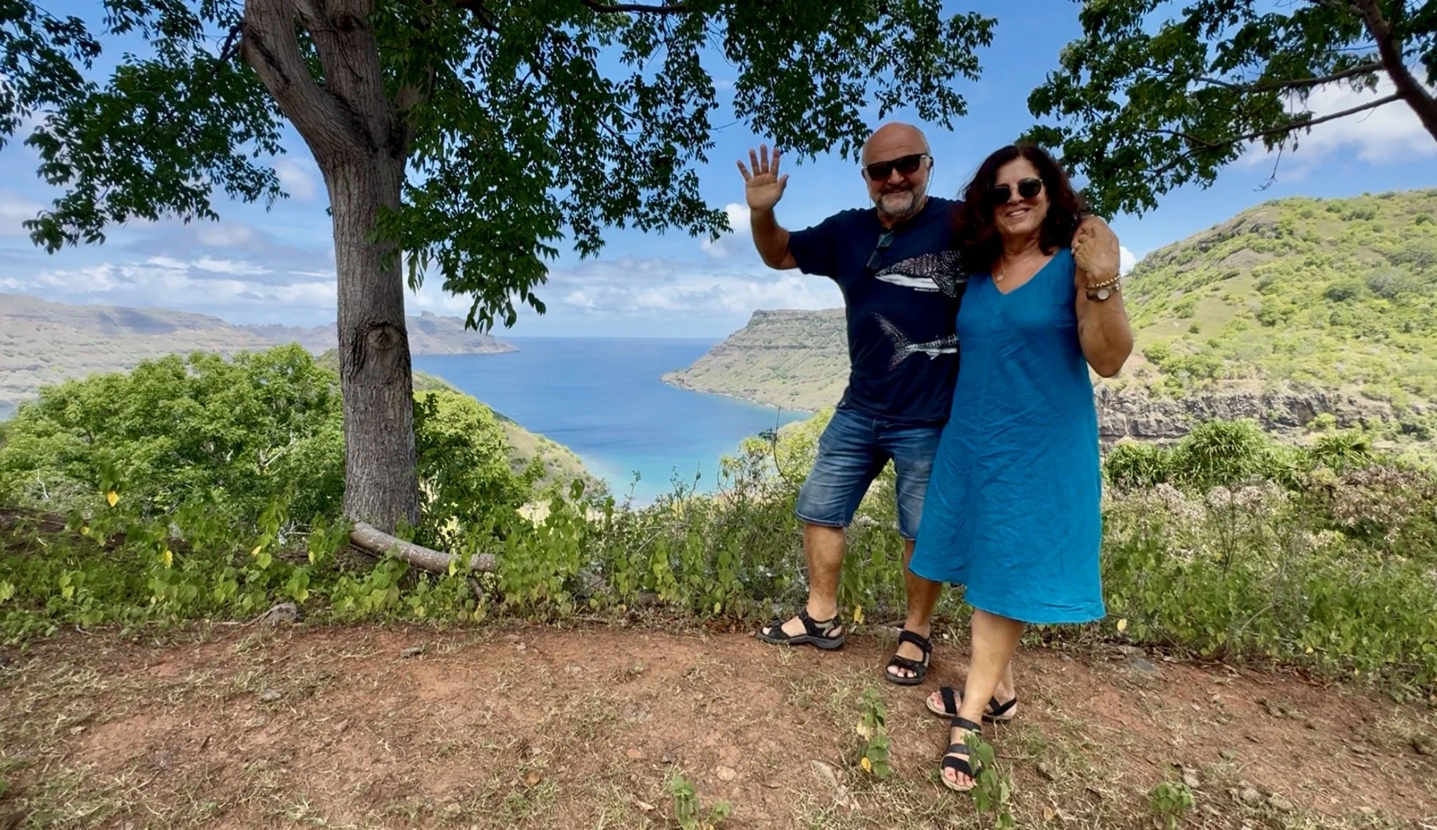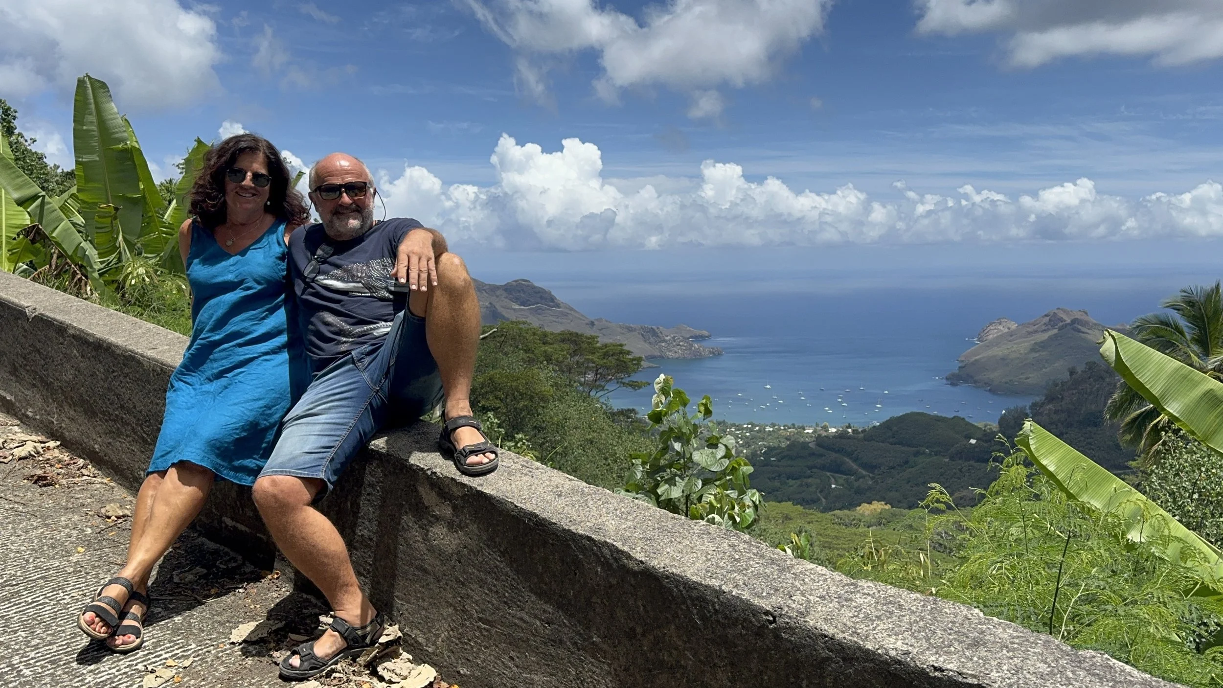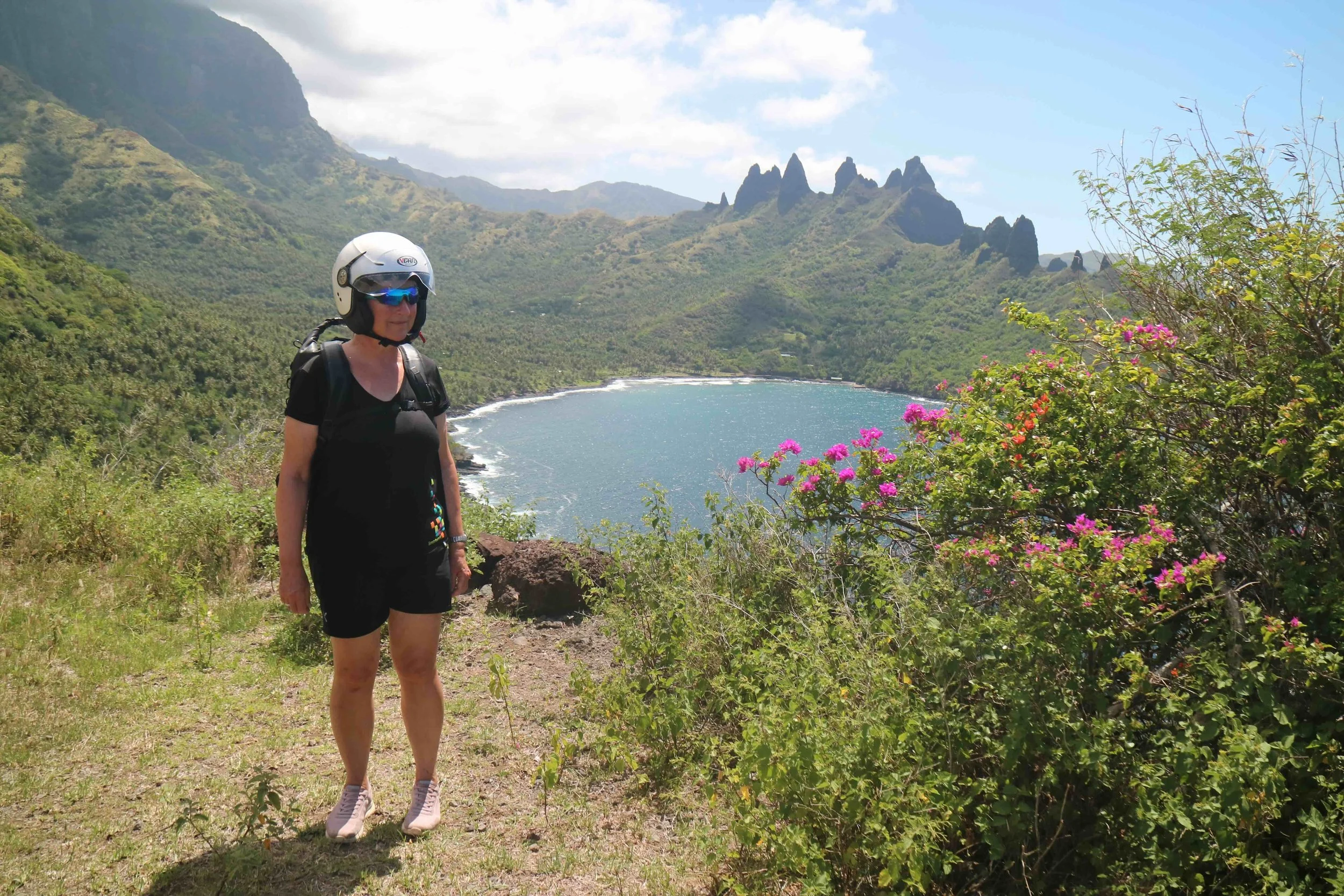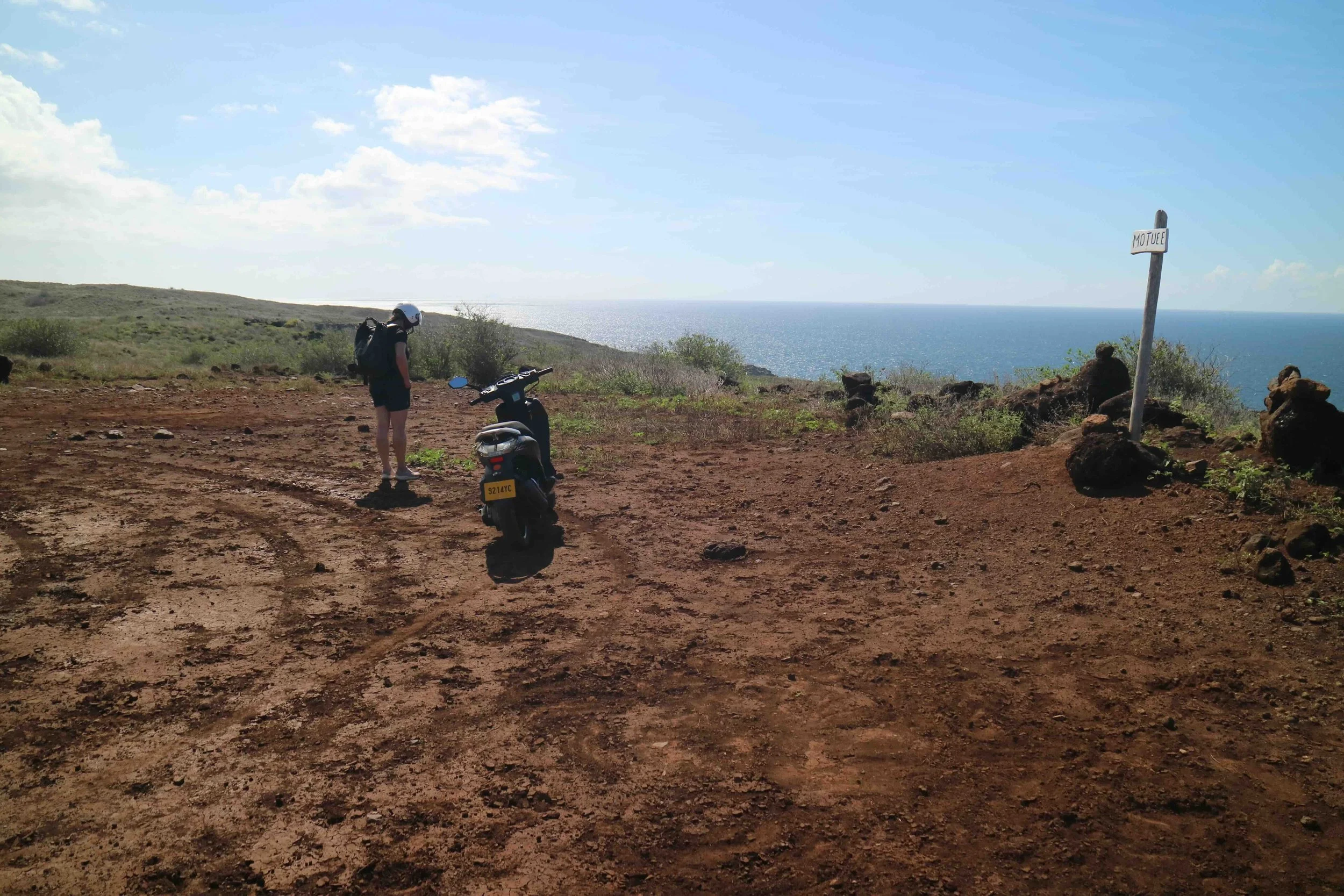 Lis und ich waren insgesamt gute 6 Stunden unterwegs. Wir sind mit dem Scooter von Taiohae zu einer “3-TälerTour” aufgebrochen. Zuerst ging es an die Ostküste nach Taipival. Von dort an die Nordostküste nach Hatiheu und von dort an die Nordseite nach Aakapa. Immer wieder Stops um die Aussicht aufzunehmen und zu genießen, in dem Wissen das übermorgen (Freitag) die Rückreise beginnt und dies die letzten Eindrücke sind. Beeindruckende Tiefblicke, spektakuläre Strassenabschnitte und eine überwältigende Pflanzenkulisse, die besonders Lis immer wieder staunen ließ. Eigentlich zu viel um es hier alles zu erwähnen. Ein paar Stichpunkte: Eine alte Siedlungsstätte (archäologische Ausgrabungen), Riesenaale, eine archaische Küstenlandschaft, und nach Aakapa ein Weg der unseren armen Scooter an seine absoluten Belastungsgrenzen brachte. Wir hatten uns entschlossen die Tour nach den 3 Tälern nicht zu beenden und den gleichen Weg zurück zu fahren, sondern einen 4×4- pflichtigen Weg (21km offroad) zum Nordwesten der Insel zu nehmen. Die Strecke war so anspruchsvoll das wir bis ¾ der Strecke nicht wussten ob wir nicht doch umdrehen müssen. Der Roller hat durchgehalten, unsere Hinterteile auch, und so konnten wir die Insel wirklich umrunden.