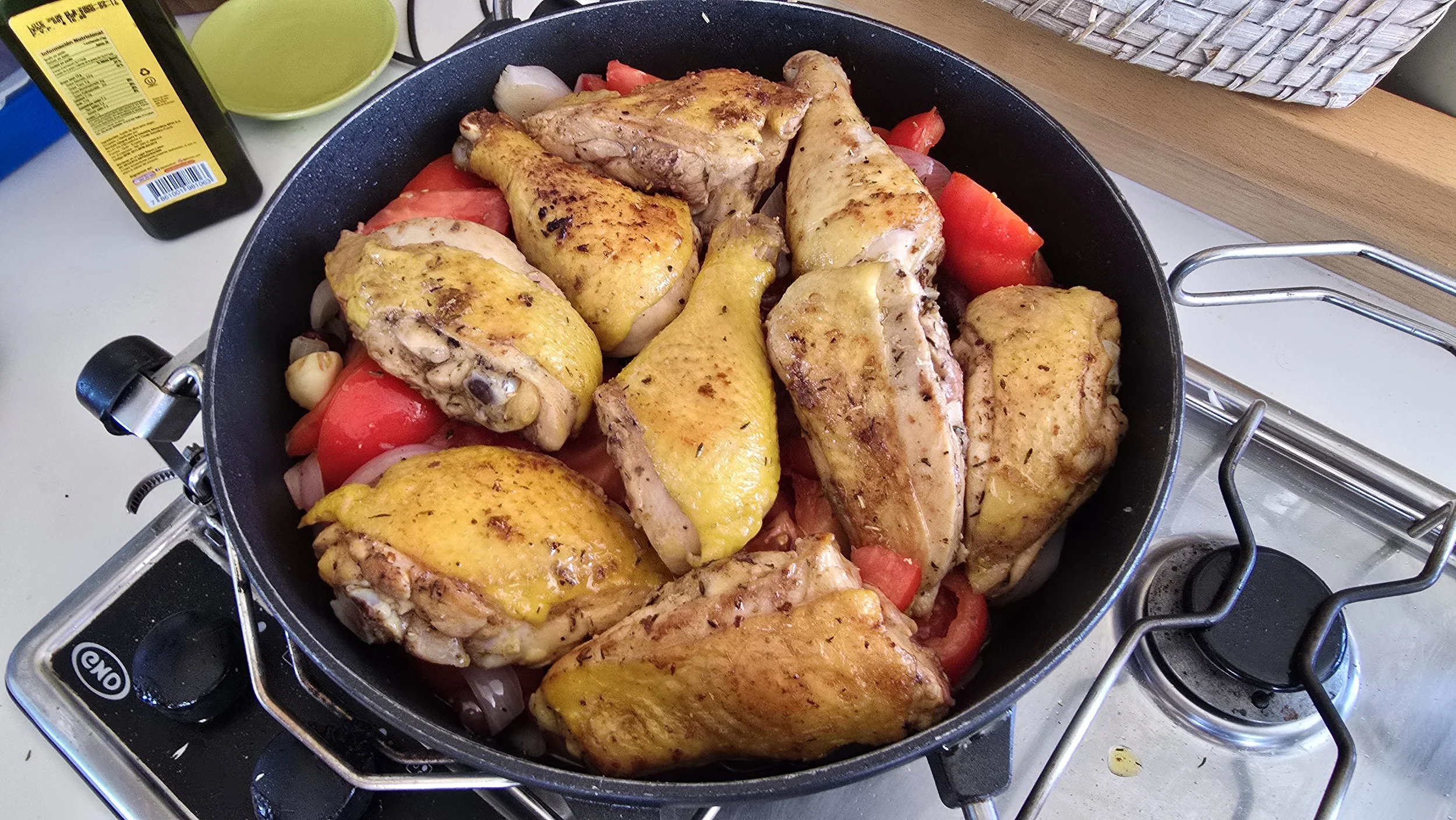 Zum Abendessen machte Gabriela um 19:00 Uhr Hühnchen auf maritime Art, sehr lecker.