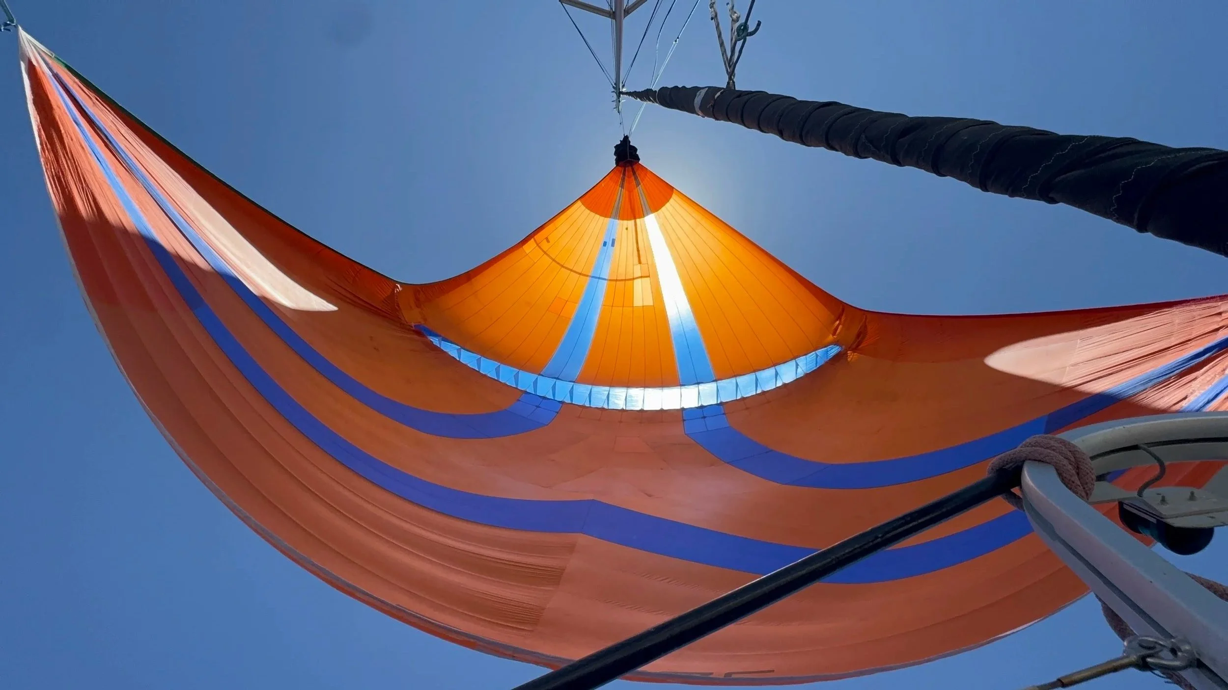 Nach dem Frühstück war dann wieder Spinakertime. Der Wind blies beständig mit einer Stärke von 10 bis 15 Knoten. Wir machten so gute Fahrt.