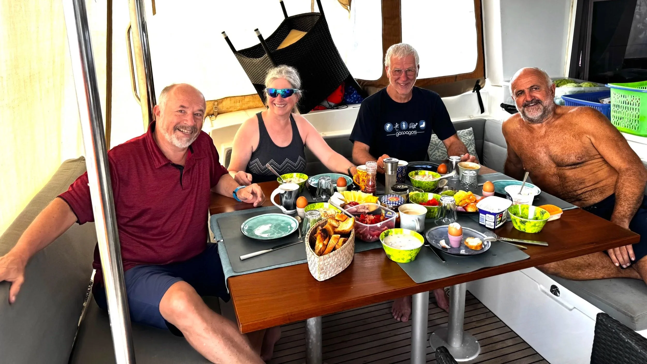 Lis, deren Wache immer die Zeit von 06:00 bis 09:00 Uhr ist, richtete das Frühstück, das wir dann um 09:00 Uhr miteinander genossen.