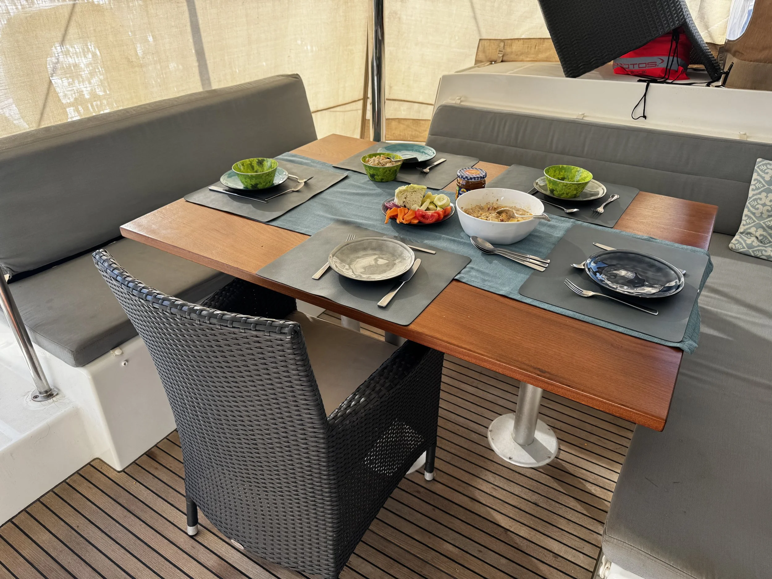 Die Nacht ist vorbei, Frühstück mit meinen Mitseglern, arbeiten am Blog und Film (ca. 3 bis 4 Stunden) kleines Mittagessen, Zeit zur Ruhe, zum Lesen, zu Gesprächen, Zeit fürs Boot, Zeit zum Fotografieren und Filmen.