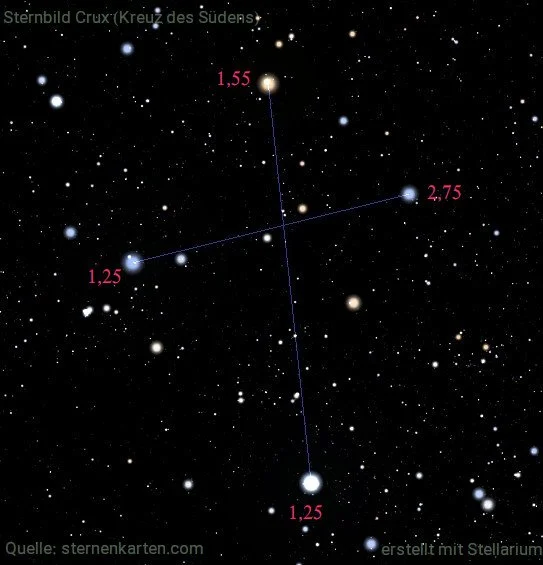 Aber es gibt das Kreuz des Südens. Eine Sternenkonstellation die einem Kreuz stark ähnelt und von lichtstarken Sternen gebildet wird.